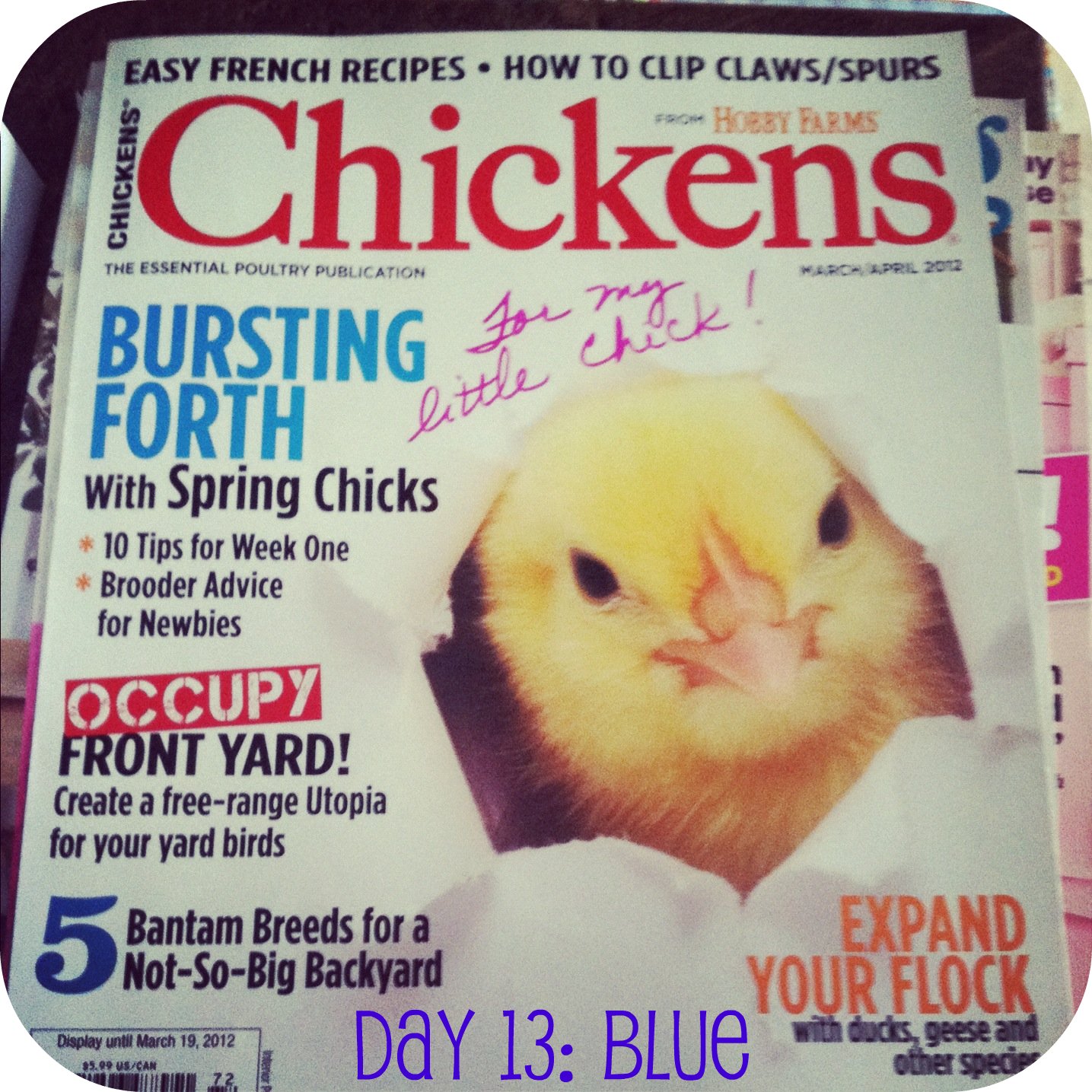 I got this in the mail from my Mom (see the little note above the chick?) and it has blue writing on it. I'm thinking of getting Chickens and she was very thoughtful to send it to me.